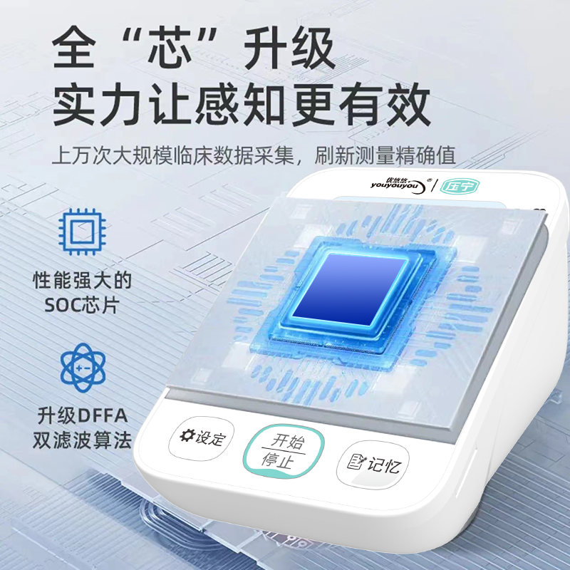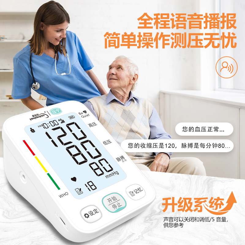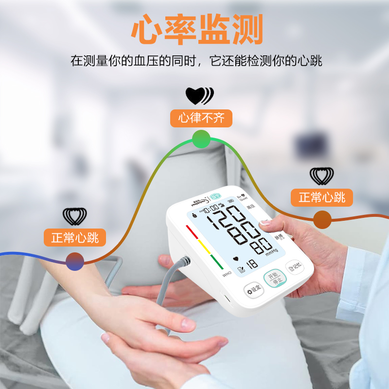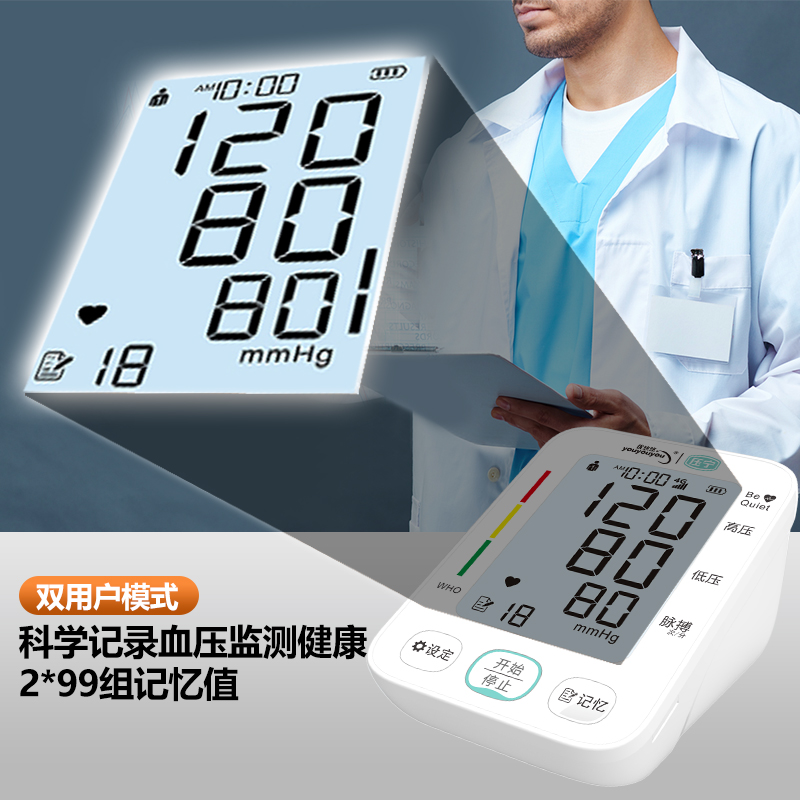 智能臂式电子血压计,集精准测量、智能科技与人性化设计于一体,为您和家人的健康保驾护航,让血压管理变得简单、可靠。还能在小程序存储多位用户的海量测量数据(每次测量包含日期、时间、收缩压、舒张压、心率),独立管理,方便您与家人共同追踪健康趋势。